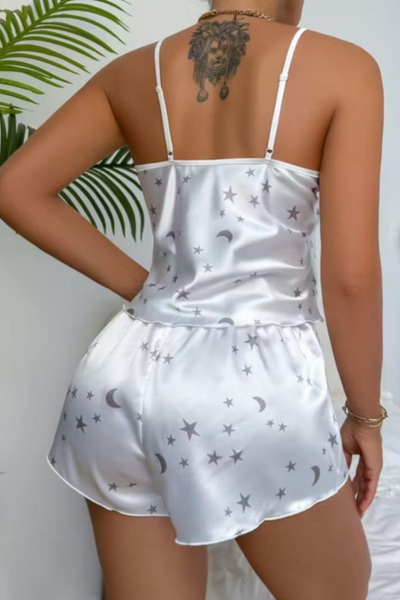 Bebi dol saten 25591 u klasičnoj beloj boji predstavlja savršen spoj jednostavne elegancije i romantičnih detalja. Njegov nežan dizajn, obogaćen motivima zvezdica i meseca, unosi osećaj smirenosti, čistoće i suptilne ženstvenosti, čineći ga idealnim izborom za žene koje cene sofisticiran izgled i udobnost.