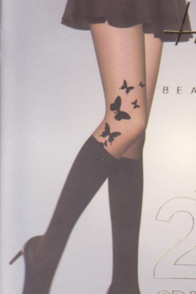 Posebna atrakcija ovog modela je nežan motiv leptira smešten tačno na kolenu – suptilan, ali upečatljiv detalj koji ističe noge i unosi dašak razigranosti i elegancije. Ovaj detalj omogućava lako kombinovanje sa haljinama, suknjama, šortsevima ili oversized džemperima, čineći čarape 552 idealnim dodatkom kako za svakodnevne, tako i za večernje kombinacije.