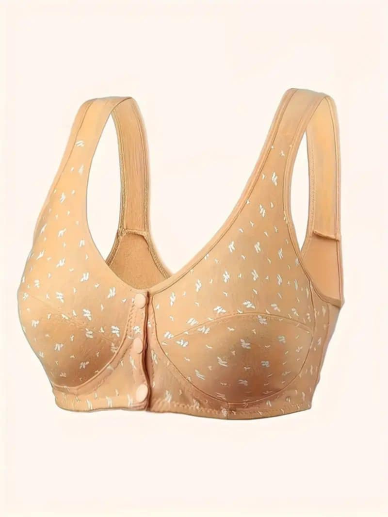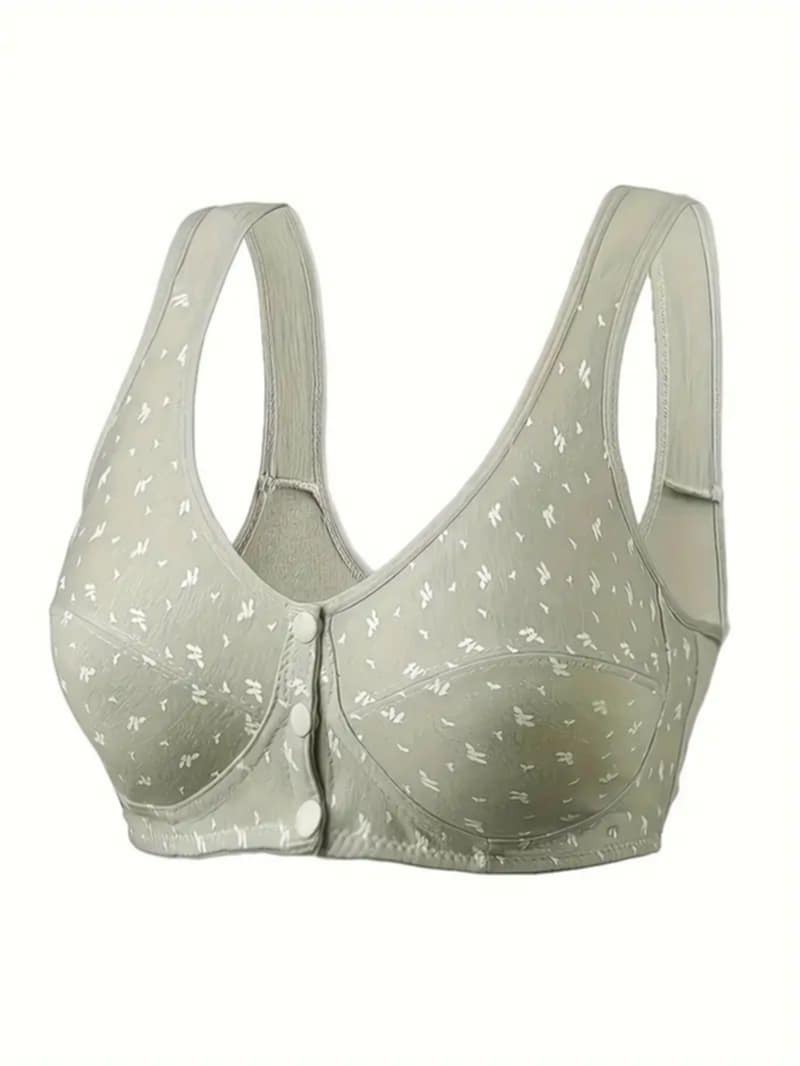 Grudnjak sa prednjim kopčanjem 24417 idealan je za dame koje traže udobnost i praktičnost bez kompromisa na estetici. Dostupan u beloj, krem i svetlo kremi zelenoj boji,dolazi u veličinama 90,95,100,105, 110 i 115, sa praznom C korpom bez žice koja pruža prirodnu potporu. Unutrašnji deo korpe izrađen je od aktivnog materijala koji je paropropustan i omogućava koži da diše. Sastav materijala je 95% poliamid i 5% elastan, što pruža prijatan osećaj na koži. Prednji deo grudnjaka ukrašen je čipkom, dodajući notu elegancije ovom funkcionalnom komadu donjeg veša.