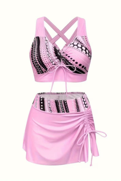 Ženski kupaći kostim iz tri dela model 241327 u nežnoj roze nijansi idealan je izbor za dame koje žele da spoje komfor, ženstvenost i savremen izgled tokom letnjih dana. Ovaj model je pažljivo osmišljen kako bi pružio maksimalnu udobnost i lakoću nošenja, uz diskretno isticanje prirodnih oblina.