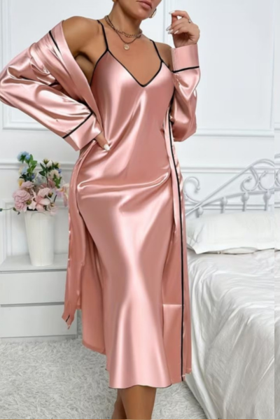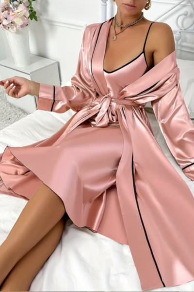 Satenski komplet 261319, koji uključuje dugačku spavaćicu i odgovarajući ogrtač, osmišljen je za žene koje žele da se osećaju elegantno, ženstveno i potpuno opušteno. Dugi kroj oba modela nežno prati liniju tela, naglašavajući prirodnu siluetu, dok mekani saten pruža luksuzan sjaj i ugodan dodir na koži. Spavaćica ima podesive bretele koje omogućavaju savršeno prilagođavanje telu i udobnost tokom celog dana ili noći, dok ogrtač dodaje sofisticiranu notu i osećaj prefinjenosti.